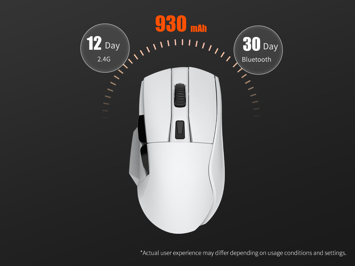 The mouse features cutting-edge wireless transmission technology, offering lower power consumption in wireless mode and faster data transfer speeds Actual user experience may differ depending on usage conditions and settings.